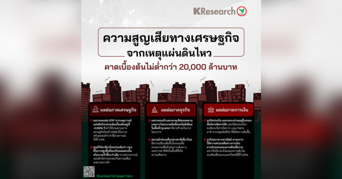 กรุงเทพฯ 31 มี.ค.- “แผ่นดินไหว” กระเทือนตลาดทุน กลุ่มอสังหา-แบงก์ถูกเทขาย ศูนย์วิจัยกสิกรไทย ประเมินกระทบจีดีพีราว 0.06% หรือ 2 หมื่นล้านบาท ท่องเที่ยว ประกัน กระทบไปด้วย รัฐบาลเร่งสร้างความเชื่อมั่น คาดกระทบระยะสั้น SET ปิดวันนี้ 1,158.09 จุด ลดลง 17.36 จุด มูลค่าซื้อขาย 40,260.73 ล้านบาท ปรับลงจากปัจจัยต่างประเทศที่กังวลสงครามการค้าที่นายโดนัลด์ ทรัมป์ ประธานาธิบดีสหรัฐเตรียมประกาศภาษีตอบโต้ในวันที่ 2 เม.ย. และเผชิญแรงขายออกมามากในกลุ่มแบงก์และกลุ่มอสังหาริมทรัพย์ หลังเกิดเหตุการณ์แผ่นดินไหวเมื่อที่ 28 มี.ค. 68 ด้านบริษัท ศูนย์วิจัยกสิกรไทย ประเมินความสูญเสียทางเศรษฐกิจจากเหตุแผ่นดินไหว คาดเบื้องต้นไม่ต่ำกว่า 20,000 ล้านบาท หรือกระทบ GDP -0.06% หลักๆ มาจากการหยุดชะงักหรือเลื่อนออกไปของกิจกรรมทางเศรษฐกิจ รวมถึงกำลังซื้อที่อาจลดลง เพราะธุรกิจและครัวเรือนต้องโยกกระแสเงินสด/รายได้ไปใช้เพื่อการตรวจสอบความเสียหายและซ่อมแซมอาคาร และ หากรวมความเสียหายต่ออาคาร ทรัพย์สิน การทรุดตัว/การสั่นสะเทือนของอาคารบางแห่งเพิ่มเติม รวมถึงการซ่อมแซมและการเคลมประกันหลังจากนี้ […]
