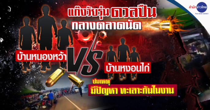 ภรรยาออกรับแทนสามี หลังทะเลาะกับวงเหล้าโต๊ะข้างๆ ถูกจ่อยิงเสียชีวิตกลางตลาดนัด ชาวบ้านถูกลูกหลงบาดเจ็บด้วย 2 ราย เจ้าหน้าที่เร่งติดตามมือยิงมาดำเนินคดี
