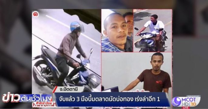 รวบแล้ว 3 มือบึ้มตลาดนัดบ่อทอง จ.ปัตตานี ชาวบ้านตาย 2 การสอบปากคำ 2 ใน 3 คน สารภาพ อีก 1 คนยังให้การภาคเสธและมีผู้ต้องสงสัยอีก 1 คน เร่งติดตามตัวมาสอบสวน