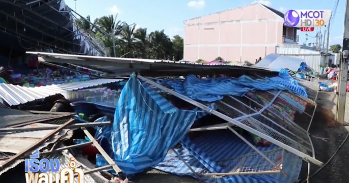 ตรังลมแรง! พัดโครงหลังคาตลาดนัดบ้านนาปด พังยับ เสียหายกว่า 100,000 บาท โชคดีไม่มีผู้บาดเจ็บ