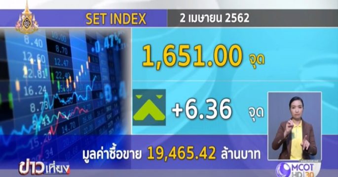ตลาดหุ้นไทยช่วงเที่ยง +14.22 จุด