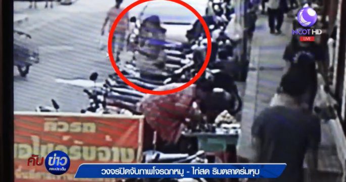 วงจรปิดจับภาพชัด ขณะโจรลักษณะเหมือนผู้หญิงแต่อาจจะเป็นสาวประเภท 2 ฉกหมูและไก่สดกว่า 1,000 บาท หนัก 12 กิโลกรัม ริมตลาดร่มหุบ เผยโดนมาแล้วหลายราย วอนเจ้าหน้าที่เร่งจับ