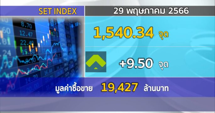 ตลาดหลักทรัพย์ฯ ปิดช่วงเช้าวันนี้ 1,540.34 จุด เพิ่มขึ้น 9.50 จุด (+0.62%) มูลค่าการซื้อขาย 19,427 ล้านบาท