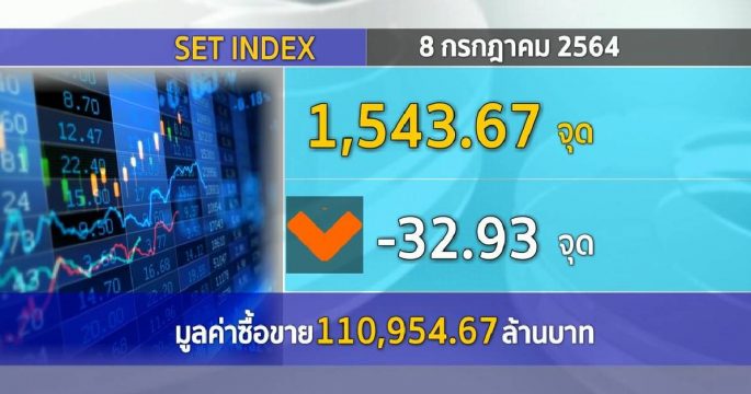 ตลาดหลักทรัพย์ ปิดวันนี้ที่ระดับ 1,543.67 จุด ลดลง 32.93 จุด (-2.09%) มูลค่าการซื้อขาย 110,954.67 ล้านบาท หวั่นล็อกดาวน์ หลังผู้ติดเชื้อโควิดทำนิวไฮ-ราคาน้ำมันร่วง