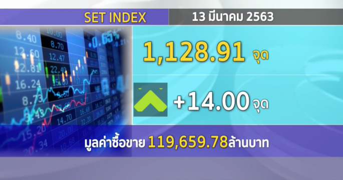 ตลาดหลักทรัพย์ปิดวันนี้ที่ระดับ 1,128.91 จุด เพิ่มขึ้น 14.00 จุด (+1.26%) มูลค่าการซื้อขาย 119,659.78 ล้านบาท