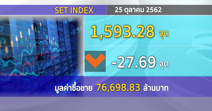 ตลาดหลักทรัพย์ปิดวันนี้ที่ระดับ 1,593.28 จุด ลดลง 27.69 จุด (-1.71%) มูลค่าการซื้อขาย 76,698.83 ล้านบาท