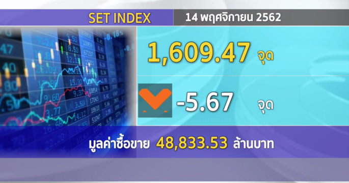 ตลาดหลักทรัพย์ปิดวันนี้ที่ระดับ 1,609.47 จุด ลดลง 5.67 จุด (-0.35%) มูลค่าการซื้อขาย 48,833.53 ล้านบาท