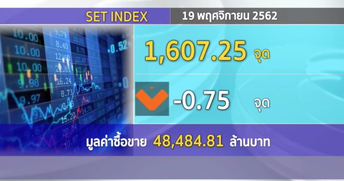 ตลาดหลักทรัพย์ปิดวันนี้ที่ระดับ 1,607.25 จุด ลดลง 0.75 จุด (-0.05%) มูลค่าการซื้อขาย 48,484.81 ล้านบาท