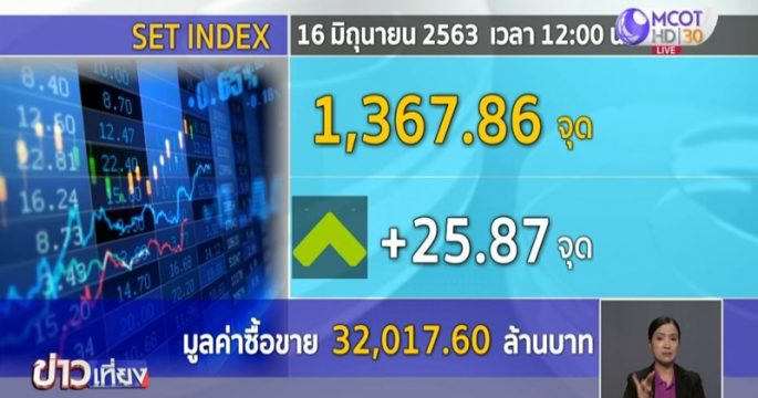 หุ้นไทยช่วงเที่ยงพุ่งแรง 25.87 จุด ตามทิศทางตลาดหุ้นภูมิภาค