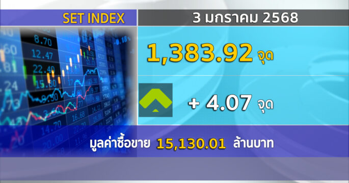 ตลาดหลักทรัพย์ฯ ปิดช่วงเช้าวันนี้ 1,383.92 จุด เพิ่มขึ้น 4.07 จุด (+0.29%) มูลค่าซื้อขายราว 15,130.01 ล้านบาท
