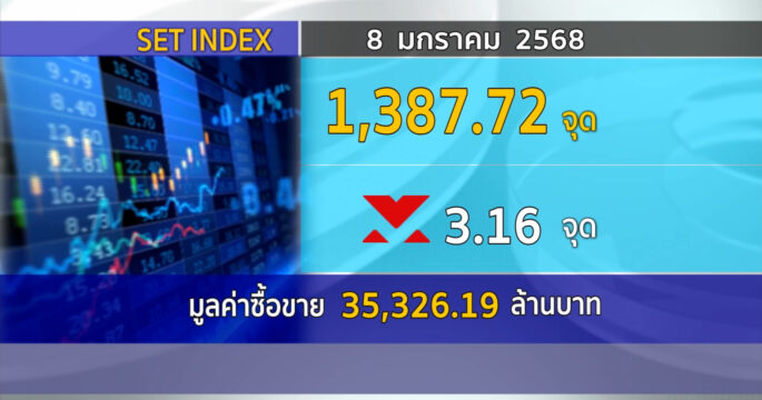 SET ปิดวันนี้ที่ 1,387.72 จุด ลดลง 3.16 จุด (-0.23%) มูลค่าซื้อขายราว 35,418.22 ล้านบาท
