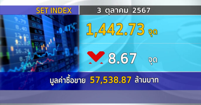 SET ปิดวันนี้ที่ 1,442.73 จุด ลดลง 8.67 จุด (-0.60%) มูลค่าซื้อขาย 57,538.87 ล้านบาท
