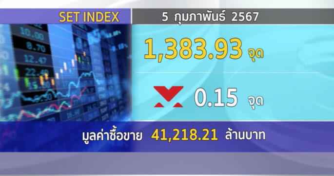 SET ปิดวันนี้ที่ 1,383.93 จุด ลดลง 0.15 จุด (-0.01%) มูลค่าการซื้อขาย 41,218.21 ล้านบาท
