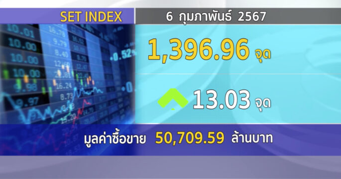 SET ปิดวันนี้ที่ 1,396.96 จุด เพิ่มขึ้น 13.03 จุด (+0.94%) มูลค่าซื้อขาย 50,709.59 ล้านบาท