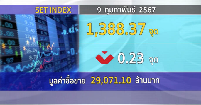 SET ปิดวันนี้ที่ 1,388.37 จุด ลดลง 0.23 จุด (-0.02%) มูลค่าซื้อขาย 29,071.10 ล้านบาท