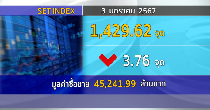 SET ปิดวันนี้ที่ 1,429.62 จุด ลดลง 3.76 จุด (-0.26%) มูลค่าซื้อขาย 45,241.99 ล้านบาท
