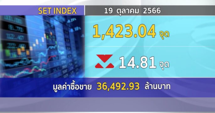 SET ปิดวันนี้ที่ 1,423.04 จุด ลดลง 14.81 จุด (-1.03%) มูลค่าการซื้อขาย 36,492.93 ล้านบาท