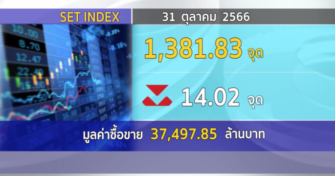 SET ปิดวันนี้ที่ 1,381.83 จุด ลดลง 14.02 จุด (-1.00%) มูลค่าซื้อขาย 37,497.85 ล้านบาท