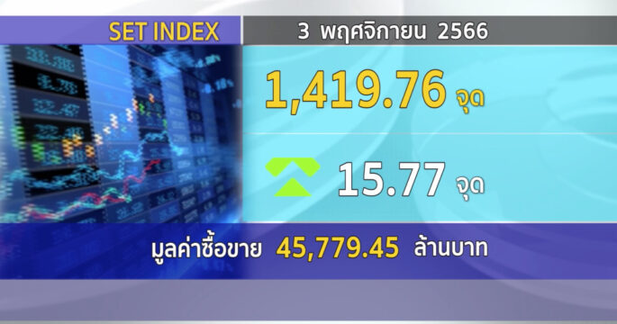 SET ปิดวันนี้ที่ 1,419.76 จุด เพิ่มขึ้น 15.77 จุด (+1.12%) มูลค่าการซื้อขาย 45,779.45 ล้านบาท