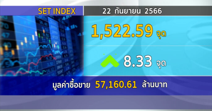 SET ปิดวันนี้ที่ 1,522.59 จุด เพิ่มขึ้น 8.33 จุด (+0.55%) มูลค่าซื้อขาย 57,160.61 ล้านบาท