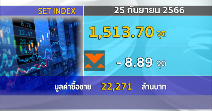 SET ปิดเช้าวันนี้ที่ 1,513.70 จุด ลดลง 8.89 จุด (-0.58%) มูลค่าซื้อขายราว 22,271 ล้านบาท