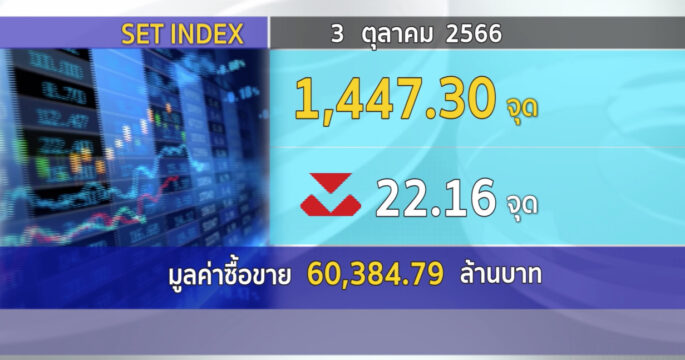 SET ปิดวันนี้ที่ 1,447.30 จุด ลดลง 22.16 จุด (-1.51%) มูลค่าซื้อขาย 60,393.44 ล้านบาท
