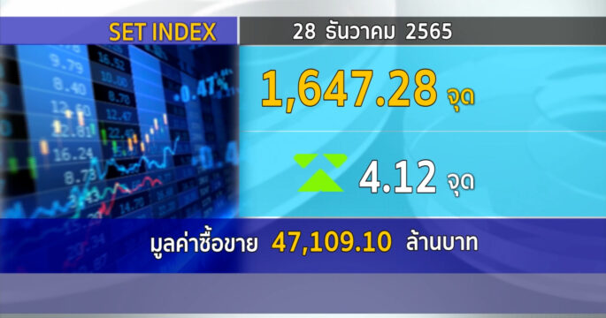 SET ปิดวันนี้ที่ 1,647.28 จุด เพิ่มขึ้น 4.12 จุด (+0.25%) มูลค่าการซื้อขาย 47,109.10 ล้านบาท