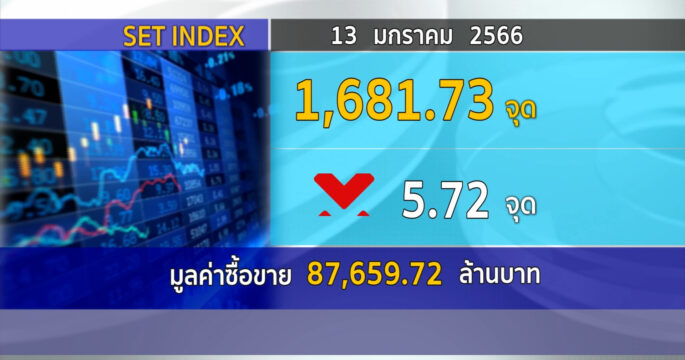 SET ปิดวันนี้ที่ 1,681.73 จุด ลดลง 5.72 จุด (-0.34%) มูลค่าการซื้อขาย 87,659.72 ล้านบาท