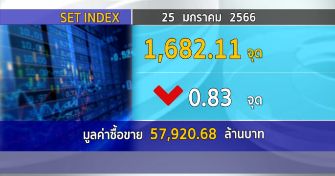 SET ปิดวันนี้ที่ 1,682.11 จุด ลดลง 0.83 จุด (-0.05%) มูลค่าการซื้อขาย 57,927.46 ล้านบาท