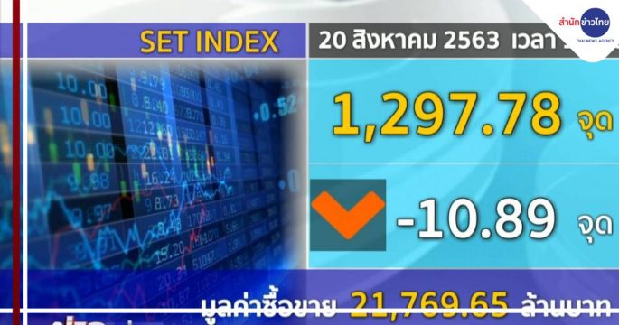 หุ้นไทยเช้านี้ปรับลดหลุด 1,300 จุด แม้จะคลายกังวลโควิด-19 แต่ยังผันผวนรับปัจจัยลบจากต่างประเทศ กังวลต่อการฟื้นตัวทางเศรษฐกิจครึ่งปีหลังนี้ ดัชนีช่วงเที่ยงอยู่ที่ 1,297.78 จุด ลดลง 10.89 จุด มูลค่าซื้อขาย 21,769.65 ล้านบาท