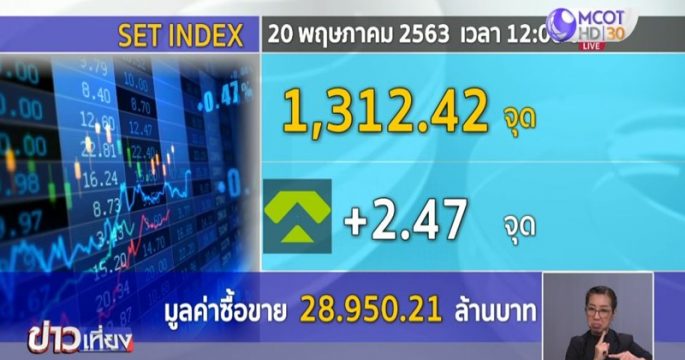 ตลาดหุ้นไทยช่วงเที่ยงพุ่งแรง +26.41 จุด มูลค่าการซื้อขาย 40,287.69 ล้านบาท ตอบรับข่าวดีมีความคืบหน้าเรื่องการผลิตวัคซีนต้านโควิด-19 จากสหรัฐ