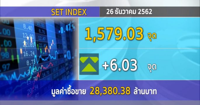 ตลาดหลักทรัพย์ปิดวันนี้ที่ระดับ 1,579.03 จุด เพิ่มขึ้น 6.03 จุด (+0.38%) มูลค่าการซื้อขาย 28,380.38 ล้านบาท