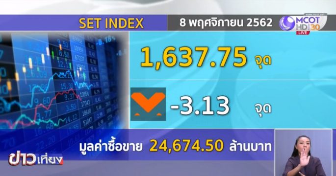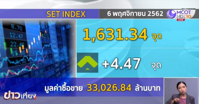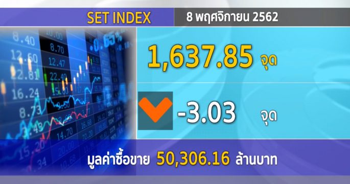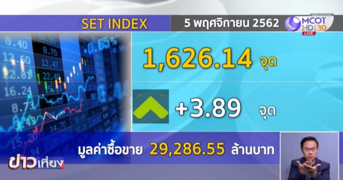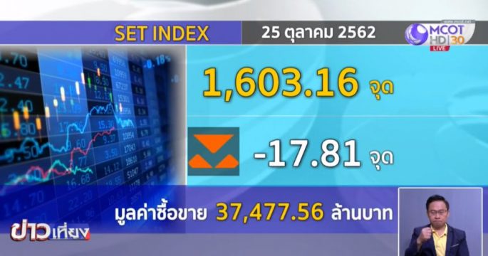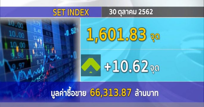 หุ้นไทยภาคเช้าปิดตลาดที่ 1,604.35 จุด บวกเพิ่มเล็กน้อยที่ 2.12 จุด มูลค่าการซื้อขาย 20,006.83 ล้านบาท จากความหวังเจรจาการค้าสหรัฐ-จีนออกมาดี แต่ตลาดหุ้นไทยมีแรงถ่วงจากผลประกอบการบริษัทจดทะเบียนงวดไตรมาส 3