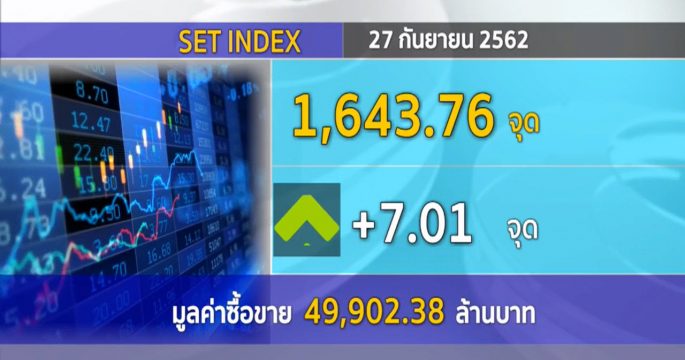 ตลาดหลักทรัพย์ปิดวันนี้ที่ระดับ 1,643.76 จุด เพิ่มขึ้น 7.01 จุด (+0.43%) มูลค่าการซื้อขาย 49,902.38 ล้านบาท