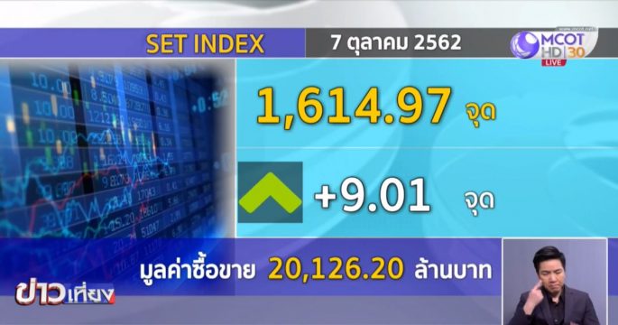 หุ้นไทยเช้านี้แกว่งตัวในกรอบแคบๆ รอดูความชัดเจนเจรจาการค้าสหรัฐ-จีน ในสัปดาห์นี้ ดัชนีช่วงเที่ยง เพิ่มขึ้น 9.01 จุด อยู่ที่ 1,614.97 จุด มูลค่าซื้อขาย 20,126.20 ล้านบาท