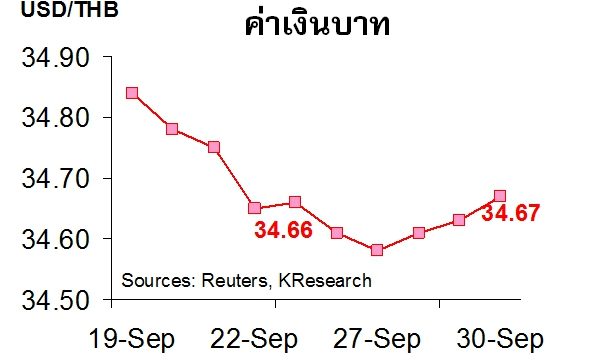 กรุงเทพฯ 1 ต.ค.-เงินบาทอ่อนค่า หุ้นไทยลดลงนักลงทุนกังวลปัญหา Deutsche Bank
