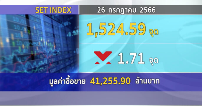 SET ปิดวันนี้ที่ 1,524.59 จุด ลดลง 1.71 จุด (-0.11%) มูลค่าซื้อขาย 41,255.90 ล้านบาท