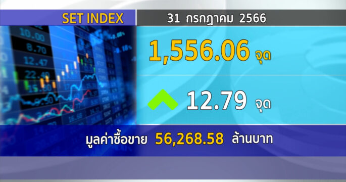 SET ปิดวันนี้ที่ 1,556.06 จุด เพิ่มขึ้น 12.79 จุด (+0.83%) มูลค่าซื้อขาย 56,268.58 ล้านบาท