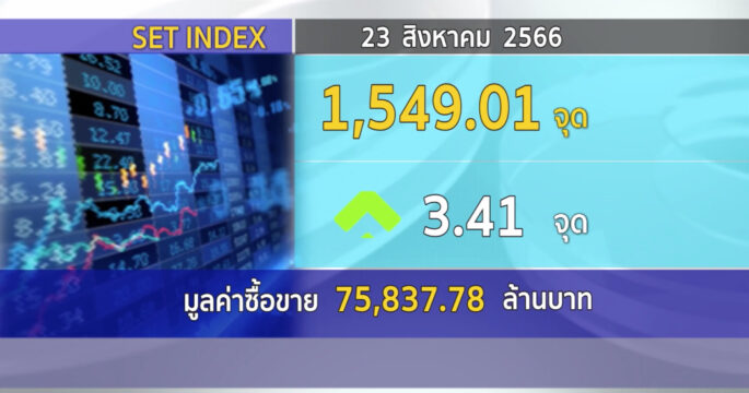 SET ปิดวันนี้ที่ 1,549.01 จุด เพิ่มขึ้น 3.41 จุด (+0.22%) มูลค่าซื้อขาย 75,837.78 ล้านบาท