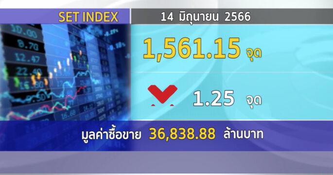 SET ปิดวันนี้ที่ 1,561.15 จุด ลดลง 1.25 จุด (-0.08%) มูลค่าการซื้อขาย 36,838.88 ล้านบาท