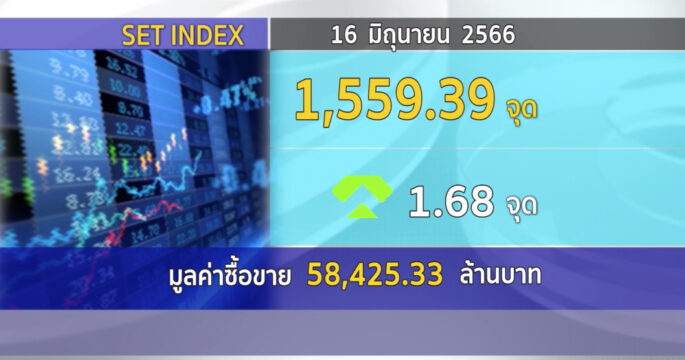 SET ปิดวันนี้ที่ 1,559.39 จุด เพิ่มขึ้น 1.68 จุด (+0.11%) มูลค่าการซื้อขาย 58,425.33 ล้านบาท