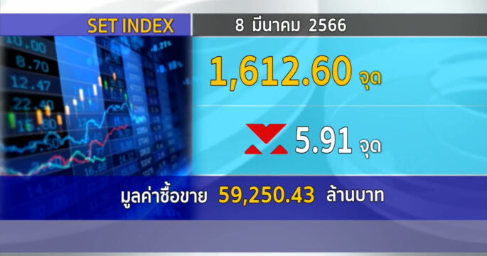 SET ปิดวันนี้ที่ 1,612.60 จุด ลดลง 5.91 จุด (-0.37%) มูลค่าการซื้อขาย 59,250.43 ล้านบาท