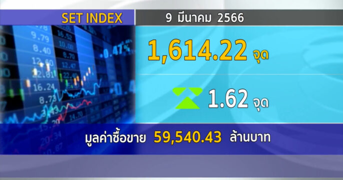 SET ปิดวันนี้ที่ 1,614.22 จุด เพิ่มขึ้น 1.62 จุด (+0.10%) มูลค่าการซื้อขาย 59,540.43 ล้านบาท