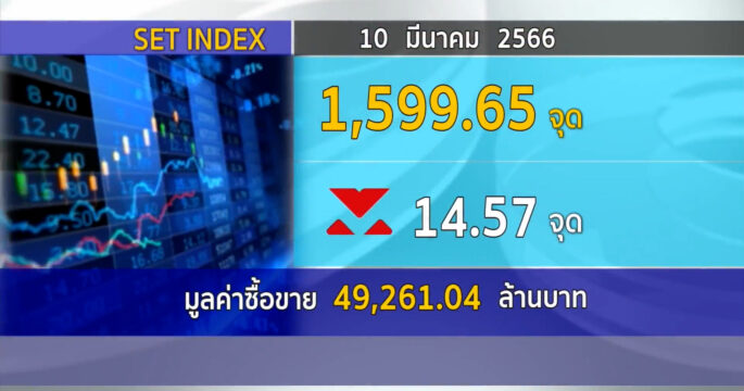 SET ปิดวันนี้ที่ 1,599.65 จุด ลดลง 14.57 จุด (-0.90%) มูลค่าการซื้อขาย 49,261.04 ล้านบาท