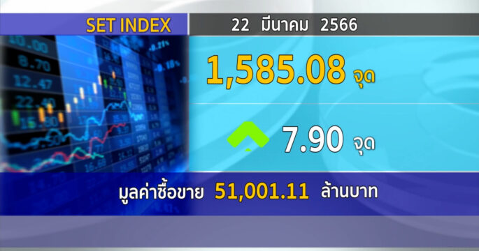 SET ปิดวันนี้ที่ 1,585.08 จุด เพิ่มขึ้น 7.90 จุด (+0.50%) มูลค่าการซื้อขาย 51,001.11 ล้านบาท