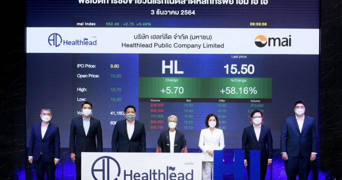 กรุงเทพฯ 3 ธ.ค.-วันนี้ หุ้น บมจ.เฮลท์ลีด หรือ HL เข้าซื้อขายในตลาดหลักทรัพย์ mai เป็นวันแรก โดยเสนอขายหุ้น IPO จำนวน 64.80 ล้านหุ้น ราคาหุ้นละ 9.80 บาท คิดเป็นมูลค่าหลักทรัพย์ ณ ราคา IP0 ที่ 2,665.6 ล้านบาท
