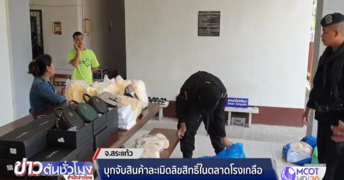 เจ้าหน้าที่หลายฝ่ายสนธิกำลังกวาดล้างจับกุมสินค้าละเมิดลิขสิทธิ์ในตลาดโรงเกลือ จ.สระแก้ว และพื้นที่โดยรอบ ก่อนเข้าสู่เทศกาลปีใหม่ ตรวจยึดกระเป๋า เสื้อกีฬา และหมวก แบรนด์ดัง รวม 351 รายการ มูลค่ากว่า 300,000 บาท