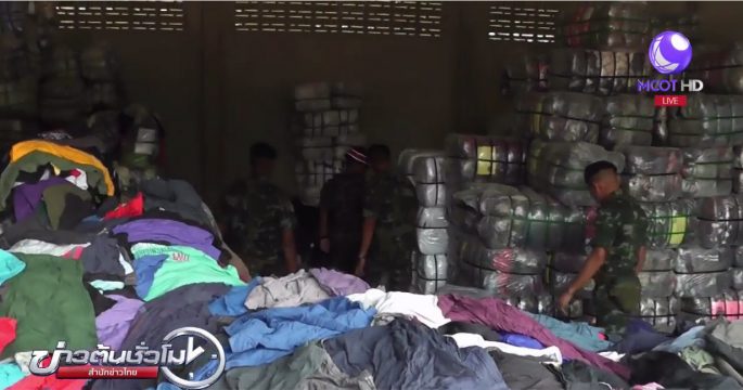 เจ้าหน้าที่สนธิกำลังเข้าตรวจค้นโกดังเก็บสินค้า ถนนเลียบแนวชายแดน ห่างจากตลาดโรงเกลือ อ.อรัญประเทศ จ.สระแก้ว ประมาณ 1 กิโลเมตร รวบชาวจีน 1 คน ขณะปีนกำแพงหนี