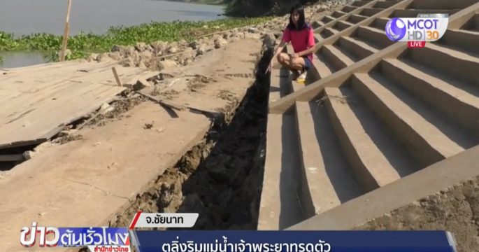 เกิดเหตุตลิ่งริมแม่น้ำเจ้าพระยาทรุดตัว ดินสไลด์เป็นทางยาวกว่า 100 เมตร และทำให้บันไดท่าน้ำเขื่อนเรียงหิน บริเวณหน้าวัดศรีมณีวรรณ อำเภอมโนรมย์ จังหวัดชัยนาท ทรุดตัวพังเสียหายยาวกว่า 10 เมตร หลังแม่น้ำเจ้าพระยาลดต่ำลงอย่างรวดเร็ว