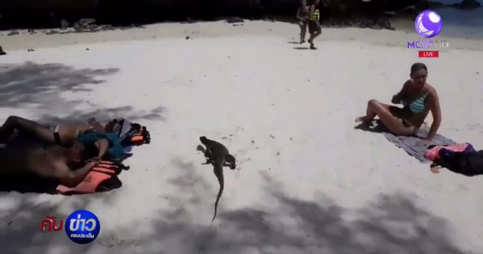 ตะกวดยาวกว่า 1 เมตร โผล่ชายหาดบุกเกาะห้อง โดยไม่มีอาการตื่นกลัว สร้างความสนใจให้นักท่องเที่ยวแห่ถ่ายรูปจำนวนมาก